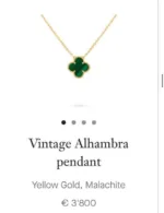 VAN CLEEF & ARPELS|Vintage Alhambra pendant|Yellow gold|Malachite